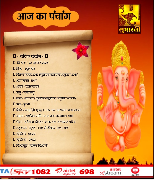 पंचांग राशिफलहमारी संस्कृति आज का पंचाग By demilation - August 22, 2025 0 159 Share Facebook Twitter Google+ Pinterest WhatsApp