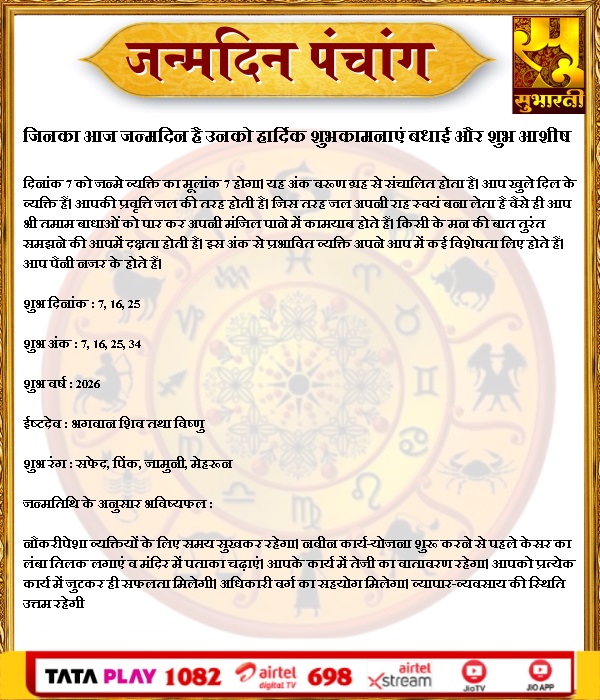 हमारी संस्कृति आपका जन्मदिन मंगलमय हो By admin - July 7, 2025 0 163 Share Facebook Twitter Google+ Pinterest WhatsApp