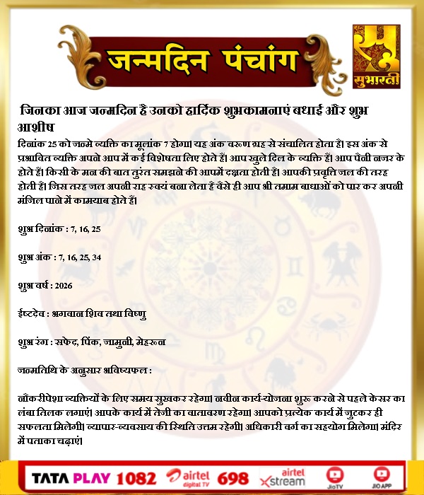 हमारी संस्कृति आपका जन्मदिन मंगलमय हो By demilation - August 25, 2025 0 144 Share Facebook Twitter Google+ Pinterest WhatsApp