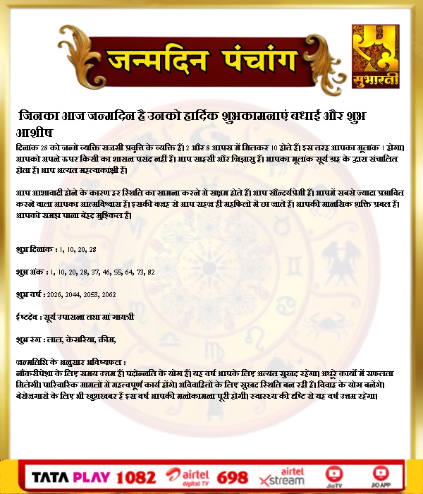 हमारी संस्कृति आपका जन्मदिन मंगलमय हो By demilation - August 28, 2025 0 60 Share Facebook Twitter Google+ Pinterest WhatsApp