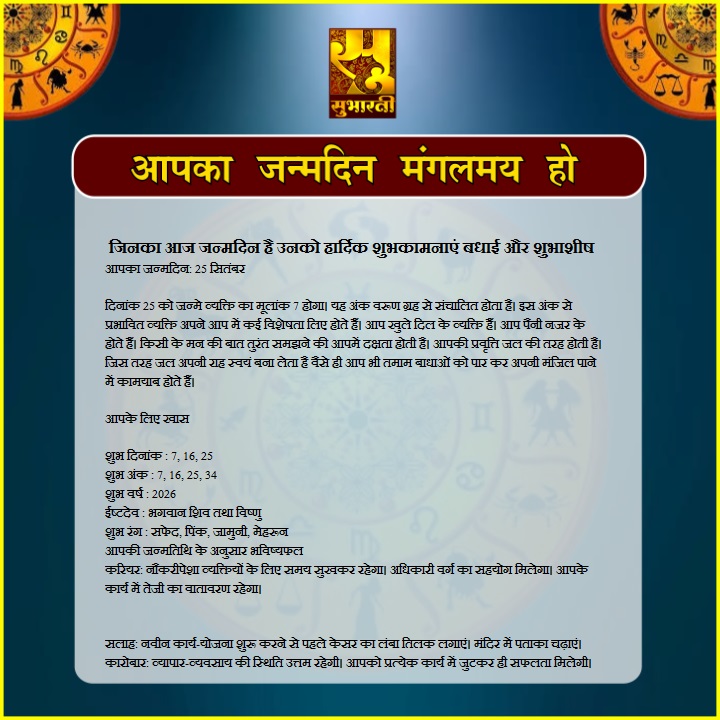 हमारी संस्कृति आपका जन्मदिन मंगलमय हो By demilation - September 25, 2025 0 51 Share Facebook Twitter Google+ Pinterest WhatsApp