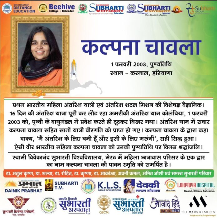 खास कार्यक्रम कल्पना चावला पुण्यतिथि By demilation - February 1, 2026 0 47 Share Facebook Twitter Google+ Pinterest WhatsApp
