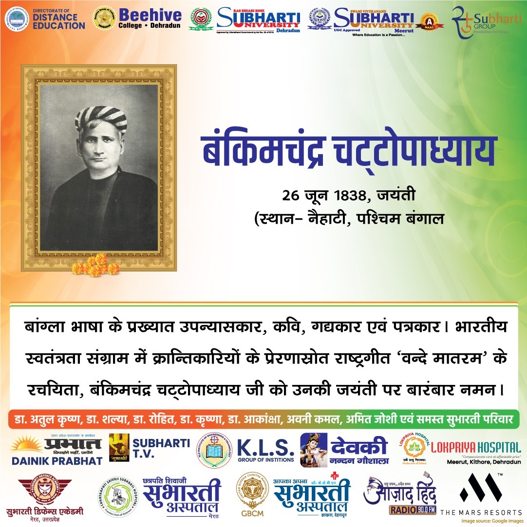 Uncategorized बंकिमचंद्र चट्टोपाध्याय की जयंती पर शत् शत नमन् By admin - June 26, 2025 0 175 Share Facebook Twitter Google+ Pinterest WhatsApp