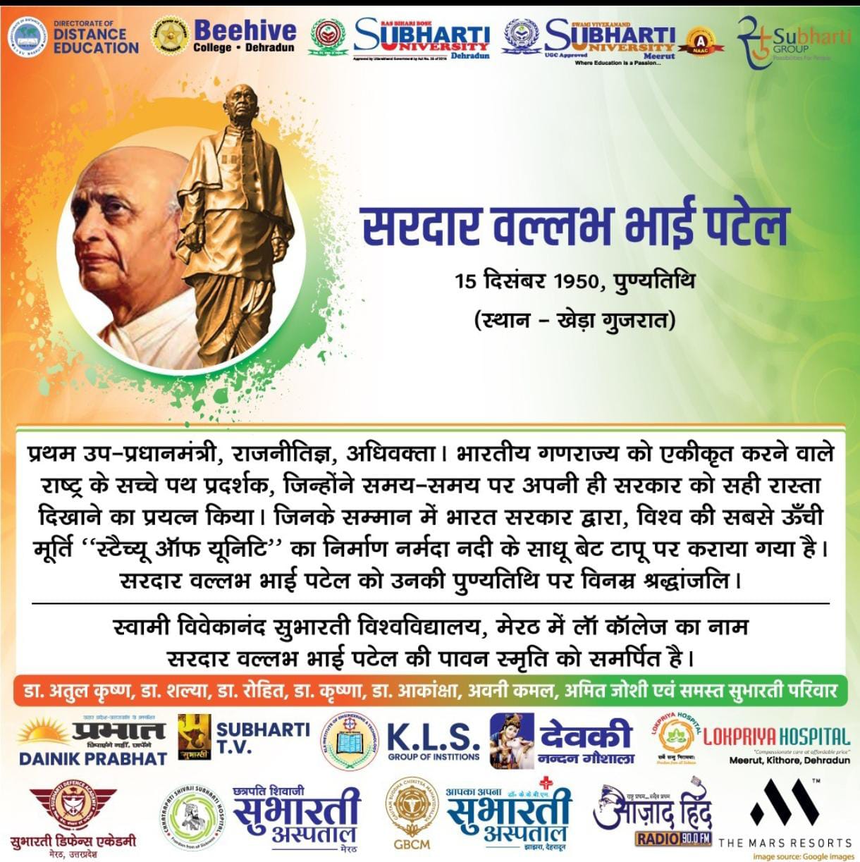 लौह पुरुष सरदार वल्लभभाई पटेल को उनकी पुण्यतिथि पर शत–शत नमन 🌺