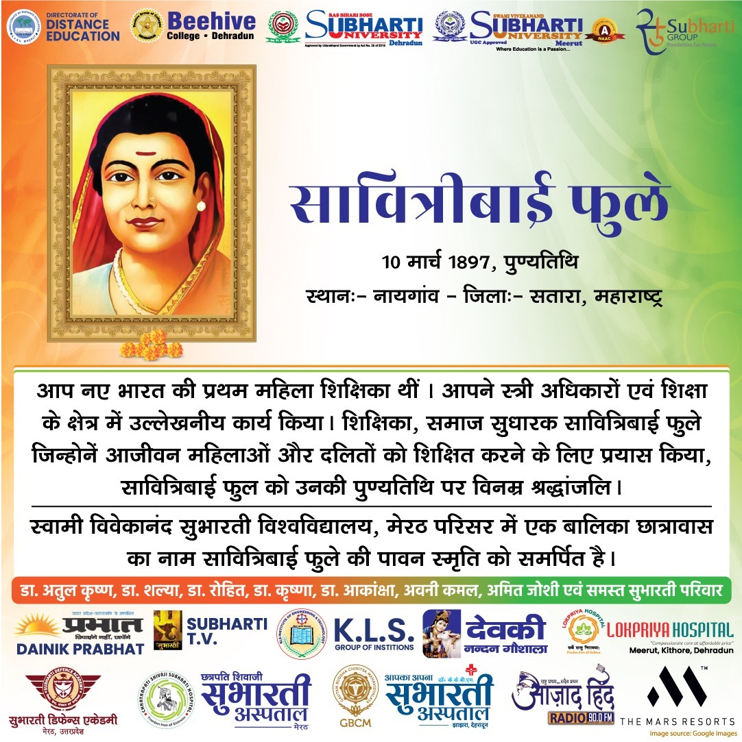 खास कार्यक्रमखोज सावित्रीबाई फुले पुण्यतिथि By demilation - March 10, 2026 0 15 Share Facebook Twitter Google+ Pinterest WhatsApp