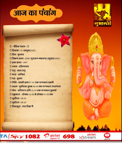 पंचांग राशिफल 01 अक्टूबर का पंचाग By demilation - October 1, 2025 0 80 Share Facebook Twitter Google+ Pinterest WhatsApp