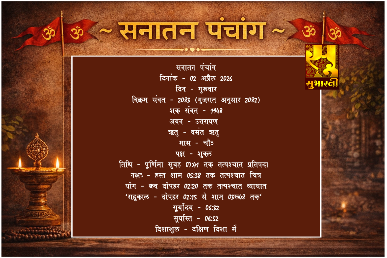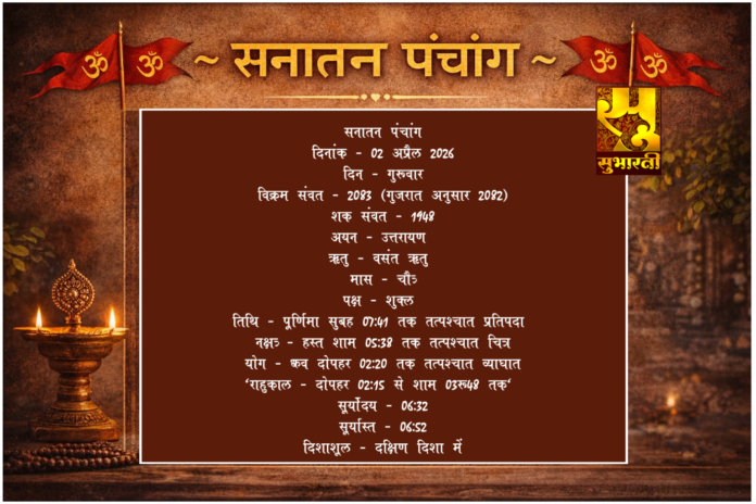 पंचांग राशिफल 02 अप्रैल का पंचांग By demilation - April 2, 2026 0 34 Share Facebook Twitter Google+ Pinterest WhatsApp