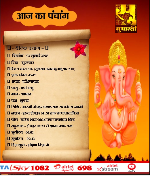 पंचांग राशिफल 03 जुलाई का पंचांग By admin - July 3, 2025 0 132 Share Facebook Twitter Google+ Pinterest WhatsApp