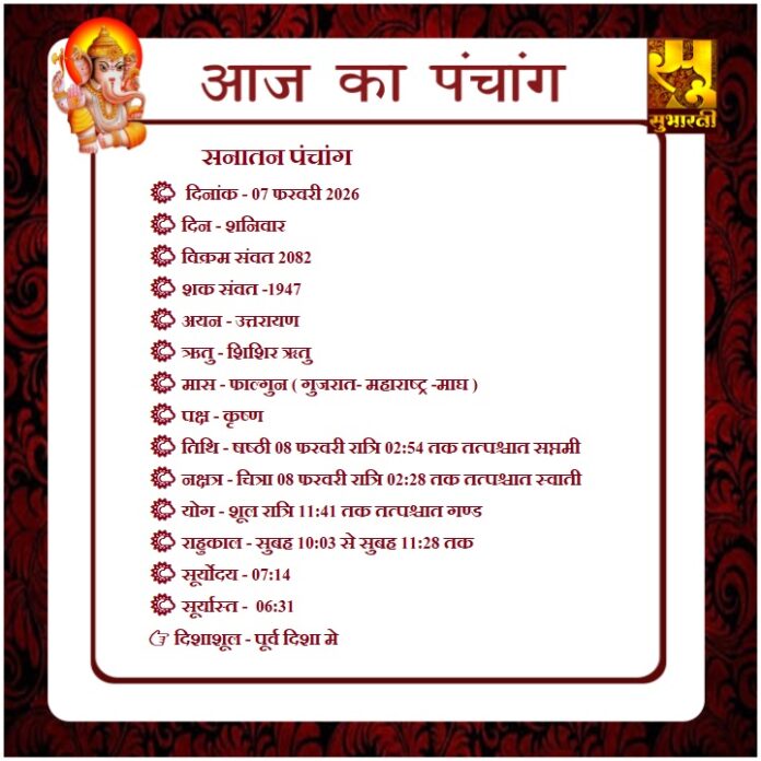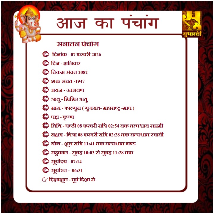 पंचांग राशिफल 07 फरवरी का पंचांग By demilation - February 7, 2026 0 46 Share Facebook Twitter Google+ Pinterest WhatsApp
