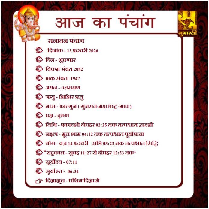 पंचांग राशिफल 13 फरवरी का पंचांग By demilation - February 13, 2026 0 45 Share Facebook Twitter Google+ Pinterest WhatsApp