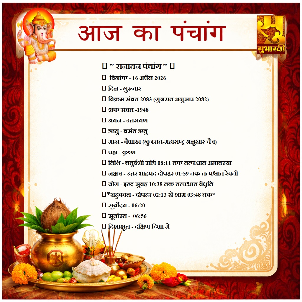 पंचांग राशिफल 16 अप्रैल का पंचांग By demilation - April 16, 2026 0 27 Share Facebook Twitter Google+ Pinterest WhatsApp