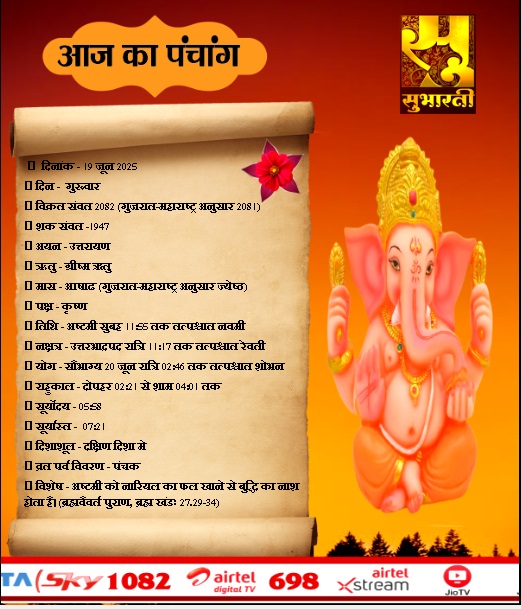 पंचांग राशिफल 19 जून का पंचांग By admin - June 19, 2025 0 132 Share Facebook Twitter Google+ Pinterest WhatsApp