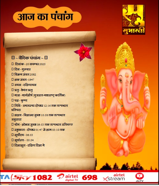 पंचांग राशिफल 20 नवम्बर का पंचाग By demilation - November 20, 2025 0 89 Share Facebook Twitter Google+ Pinterest WhatsApp