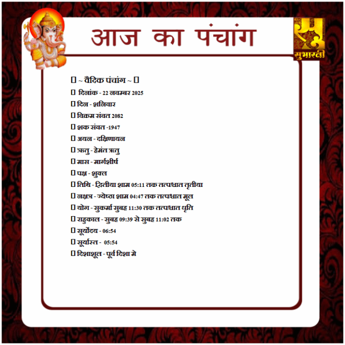 पंचांग राशिफल 22 नवम्बर का पंचाग By demilation - November 22, 2025 0 46 Share Facebook Twitter Google+ Pinterest WhatsApp