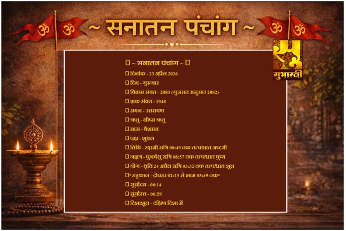 पंचांग राशिफल 23 अप्रैल का पंचांग By demilation - April 23, 2026 0 8 Share Facebook Twitter Google+ Pinterest WhatsApp