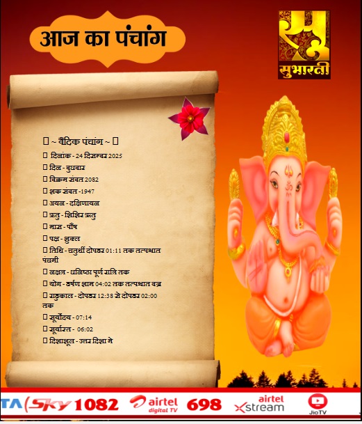 पंचांग राशिफल 24 दिसम्बर का पंचाग By demilation - December 24, 2025 0 57 Share Facebook Twitter Google+ Pinterest WhatsApp