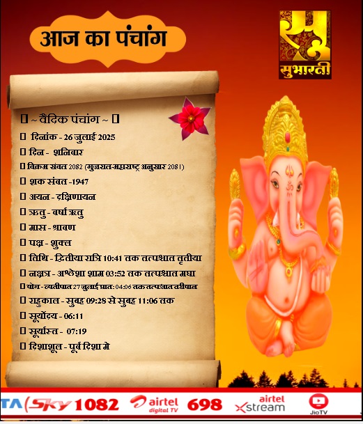 पंचांग राशिफल 26 जुलाई का पंचांग By demilation - July 26, 2025 0 65 Share Facebook Twitter Google+ Pinterest WhatsApp