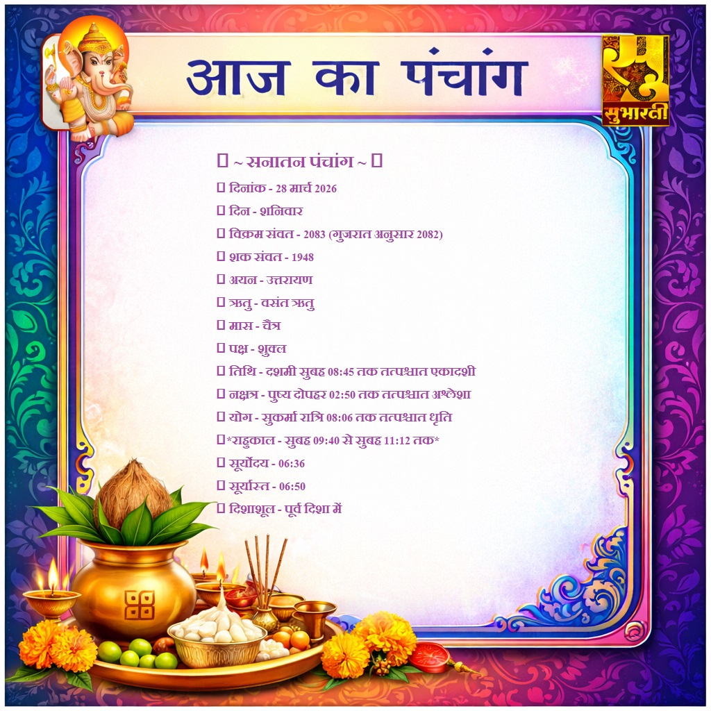 पंचांग राशिफल 28 मार्च का पंचाग By demilation - March 28, 2026 0 42 Share Facebook Twitter Google+ Pinterest WhatsApp