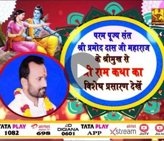 परम पूज्य संत श्री प्रमोद दास जी महाराज श्री राम कथा का विशेष प्रसारण देखें 16 सितम्बर 2023 से प्रतिदिन दोपहर 02 से सायं...