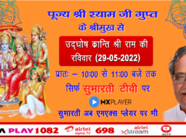 देखना ना भूलें पूज्य श्री श्याम जी गुप्त के श्रीमुख से उदघोष क्रान्ति श्री राम की कल रविवार (29-05-2022)प्रात: 10:00 से 11:00 बजे तक...